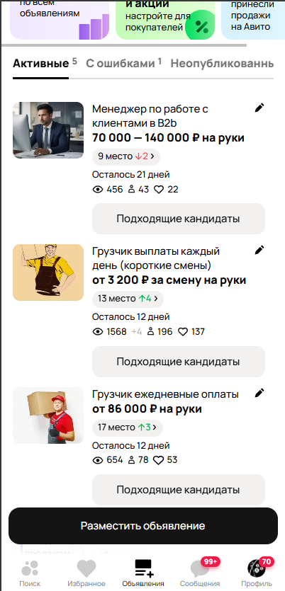 Мы постоянно анализируем алгоритмы платформы и ищем способы максимально эффективно продвигать вакансии, тратя при этом минимум бюджета.